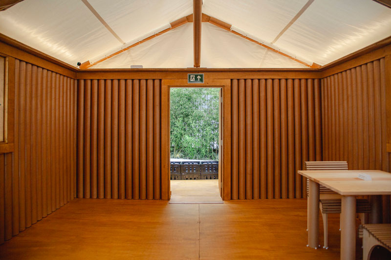 サンパウロのJapan Houseで開催中の、資源再生の取り組みや新素材の開発などに着目した「Japanese principles : design and resources」展において紙のログハウスを展示しています。FAU-USP大学が中心となり、ETEC Itaquera IIs大学とEscola da Cidade大学も参加したワークショップにより建設が行われました。