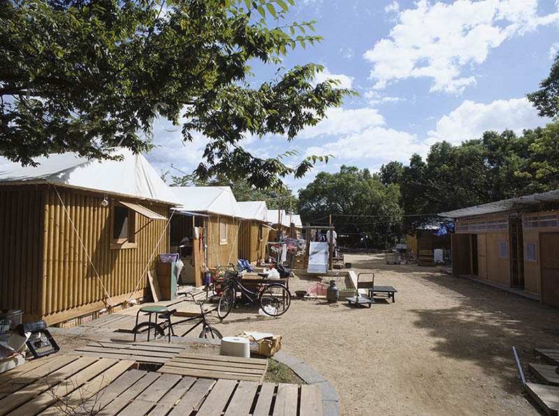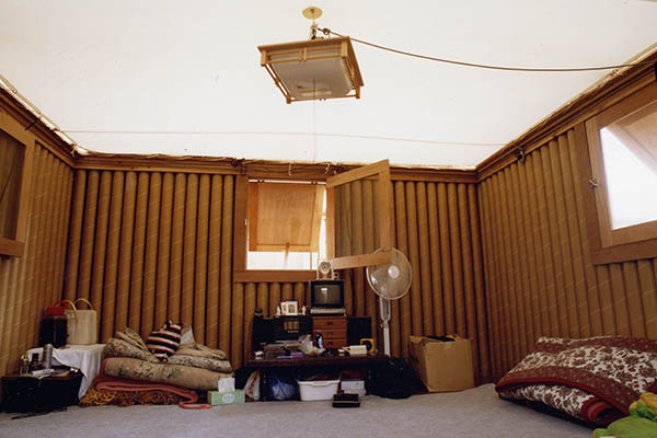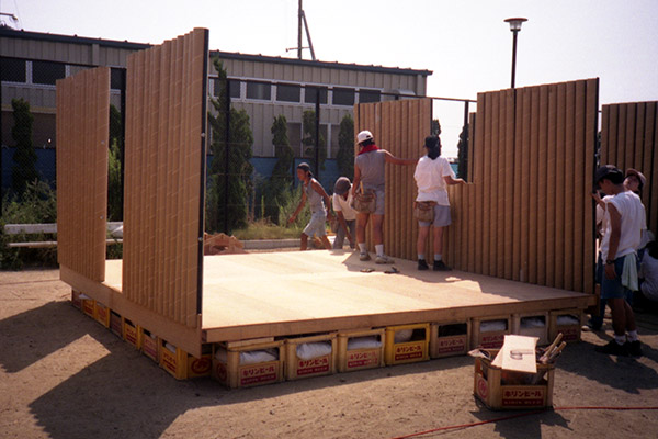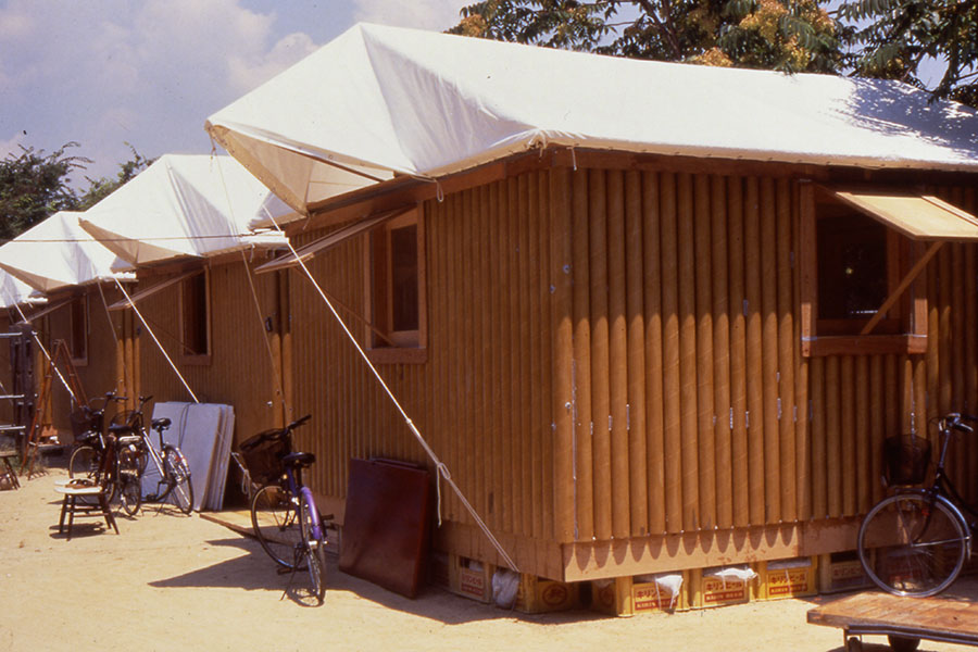 阪神大震災の被災者のためにつくられた仮設の紙のログハウス。安価で誰でも簡単に組み立てられ、夏冬の断熱性能を有するよう設計が進められた。基礎には砂袋入りのビールケース、壁と小屋組は紙管、天井と屋根にテント膜を使用している。コストを抑えるとともに、解体しやすさ、残材の処分、リサイクルコストの面でも優れたものとなっている。