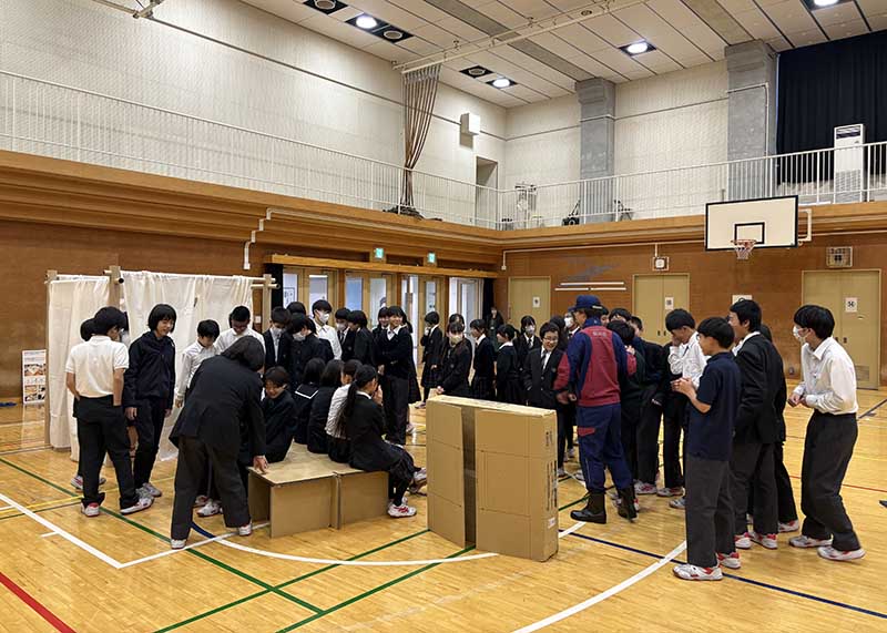 避難所用・紙の間仕切りシステム